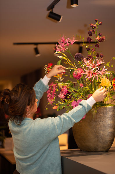 Met meer dan 25 jaar ervaring werk ik uitsluitend met hoogwaardige zijden bloemen die nauwelijks van echt te onderscheiden zijn. Ik combineer kleur, vorm en structuur tot een boeket dat klopt, raakt en blijft verrassen.